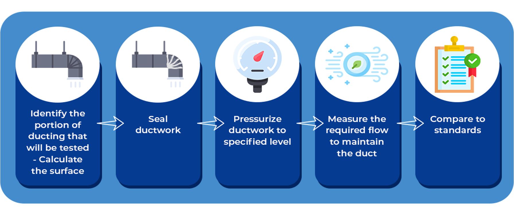 These are the steps that is taken to test HVAC duct leakage according to Standard